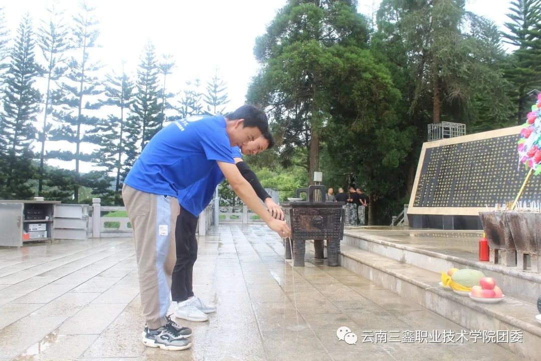 首先由學(xué)院團(tuán)委書記王家琛老師和李慶妹老師帶領(lǐng)我們向烈士們默哀、獻(xiàn)煙,敬酒。