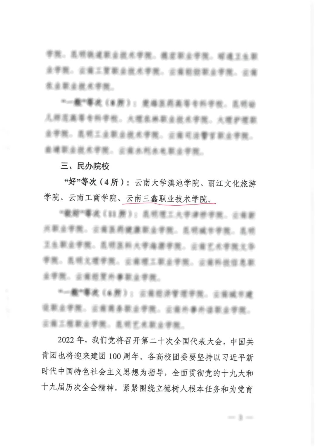 在2021年年度檢查工作中,經(jīng)共青團(tuán)云南省委考核,我校團(tuán)委被評(píng)定為“好”。此次考核全省所有高校參評(píng),民辦院校21所中獲評(píng)為“好”的共計(jì)4所,我校是全省唯一一所獲得最高等級(jí)評(píng)定的民辦專科院校。