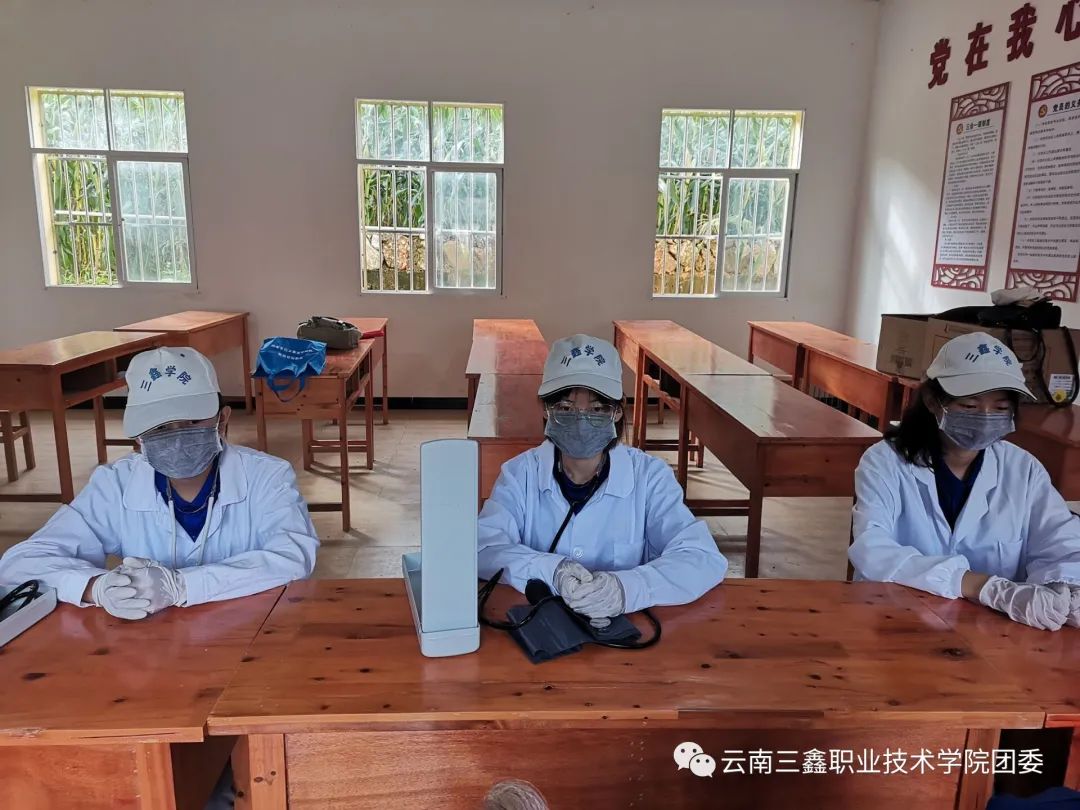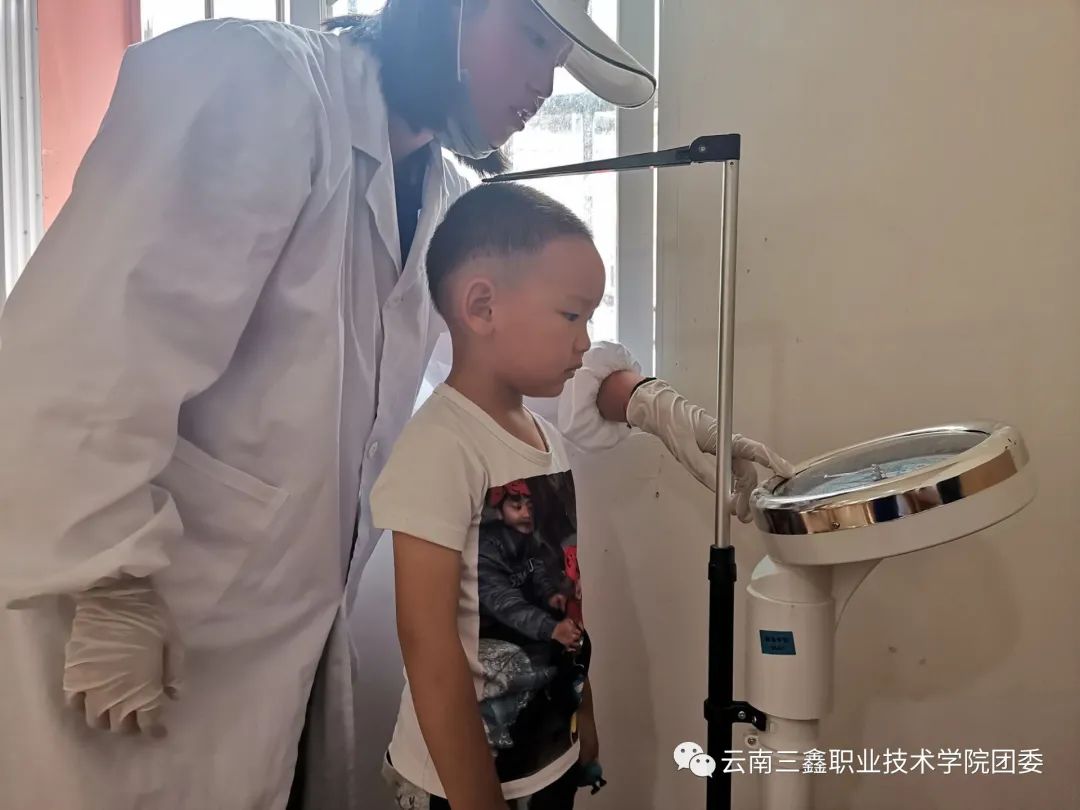 給村民測(cè)量血壓,為小朋友們測(cè)量身高和體重。