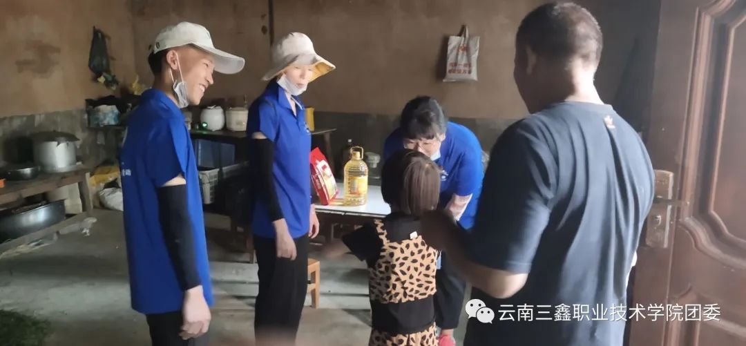在村干部的帶領(lǐng)下部分志愿者代表和老師走訪慰問貧困戶和留守兒童,到村民家中走訪并送去慰問品。