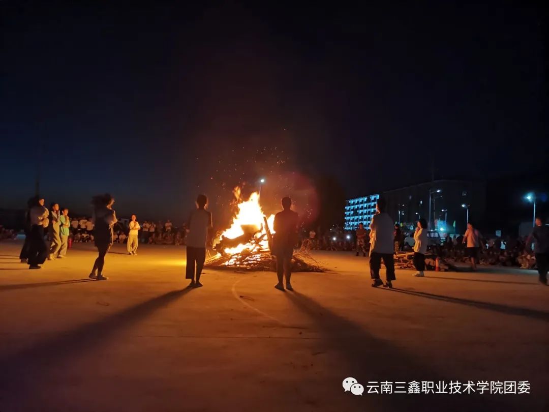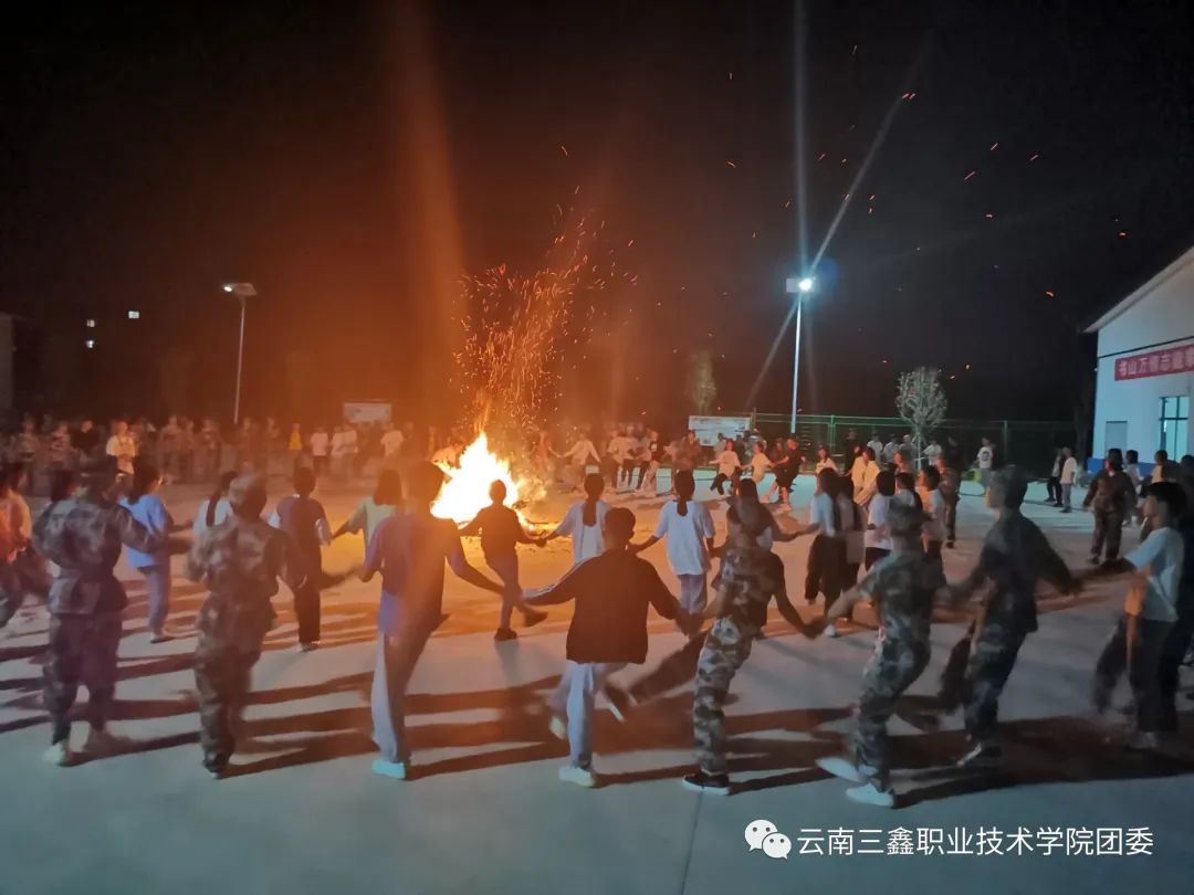 篝火點燃了在場師生的激情,學(xué)生干部帶著學(xué)弟學(xué)妹們跳《納西三部曲》和《7月火把節(jié)》,整個場面燈火相應(yīng)又不失溫馨的色彩。不僅展示了學(xué)生的風(fēng)采和特長,還極大地豐富了學(xué)生的課余生活,營造了一種百花齊放的校園氛圍。同時,這也讓新同學(xué)更好的融入三鑫這個大家庭。