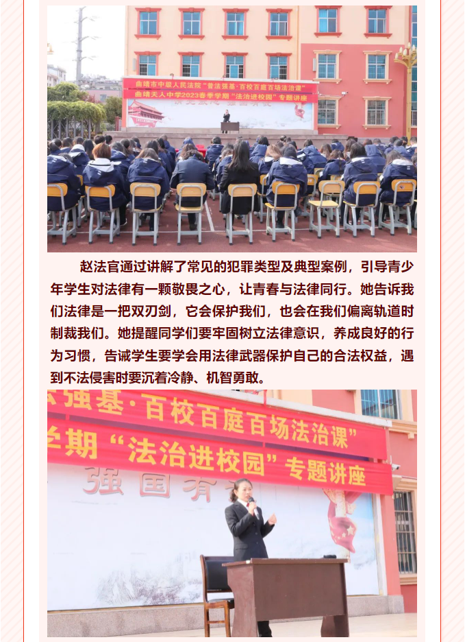 曲靖天人高級中學(xué)開展“普法強(qiáng)基,法護(hù)青春”法治教育專題講座