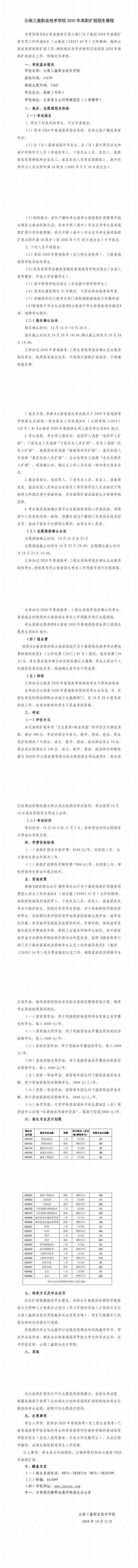 云南三鑫職業(yè)技術(shù)學(xué)院2020高職擴(kuò)招招生章程