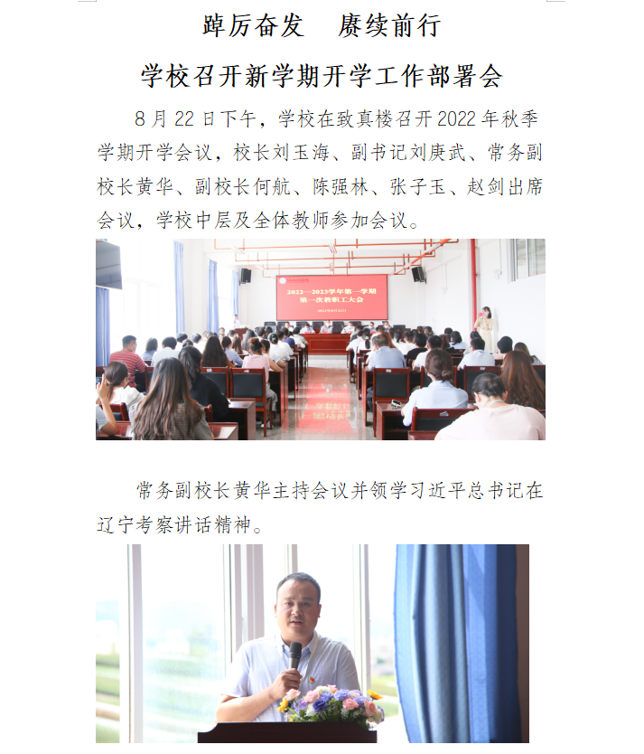 踔厲奮發(fā) 賡續(xù)前行:學校召開新學期開學工作部署會